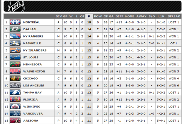 The Stars are currently in 1rst-place in the Central Division with 14-points, in which the separation between first and fifth place is just 3-points, making for quite a log jam in the standings.