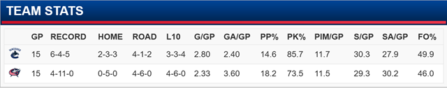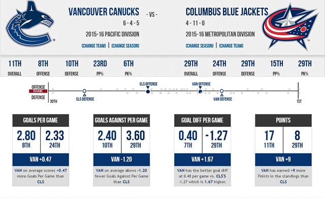 - The Canucks are 7-3 in the last 10 meetings in Columbus and 14-4 in the last 18 meetings overall.