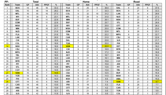 - Vancouver is 0-13 on the power play in their last 4-games after starting the season 7-35. The Canucks were 0-6 on the power play including a 5-minute power play opportunity against New Jersey.