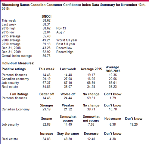 Bloomberg Nanos Weekly Consumer Confidence Tracking