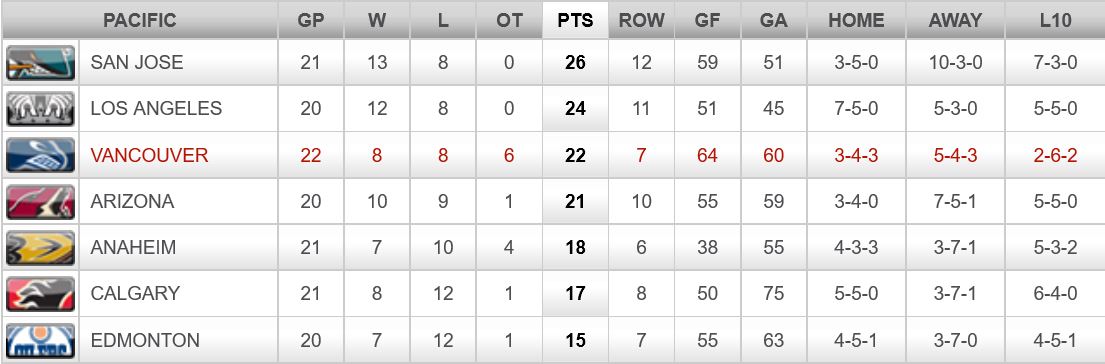 Statistics courtesy of the NHL, and the Vancouver Canucks.