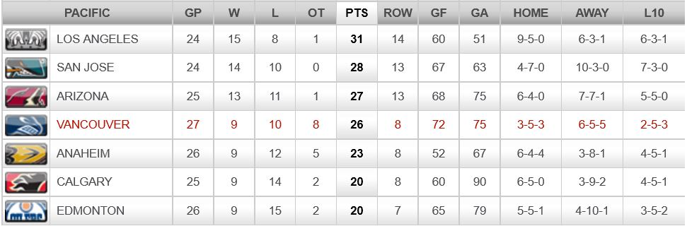 Canucks 4rth loss in a row. Canucks 10th loss in a row to the Dallas Stars.