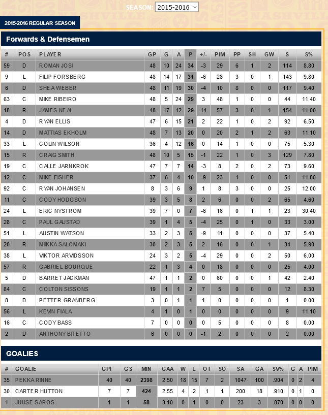 - In 38 games with Columbus Blue Jackets: 0.69 points/game (6g-20a-26pts) In seven games with Nashville Predators: 1.29 points/game (3g-6a-9pts)