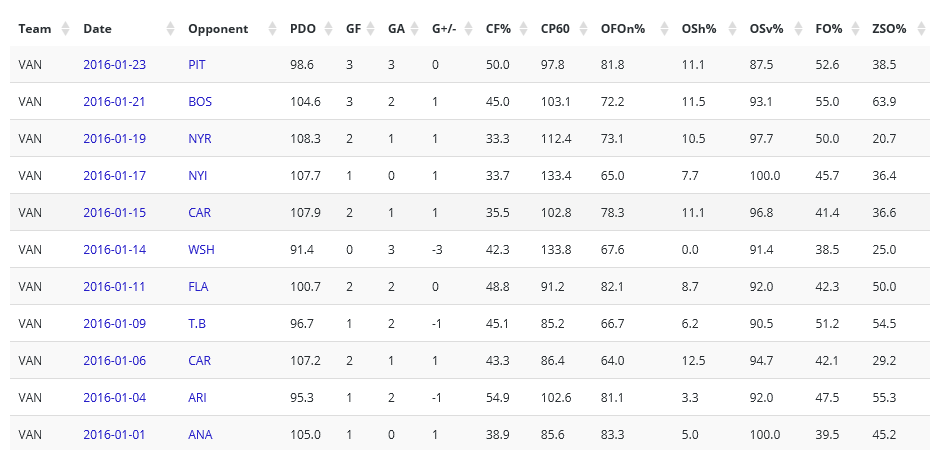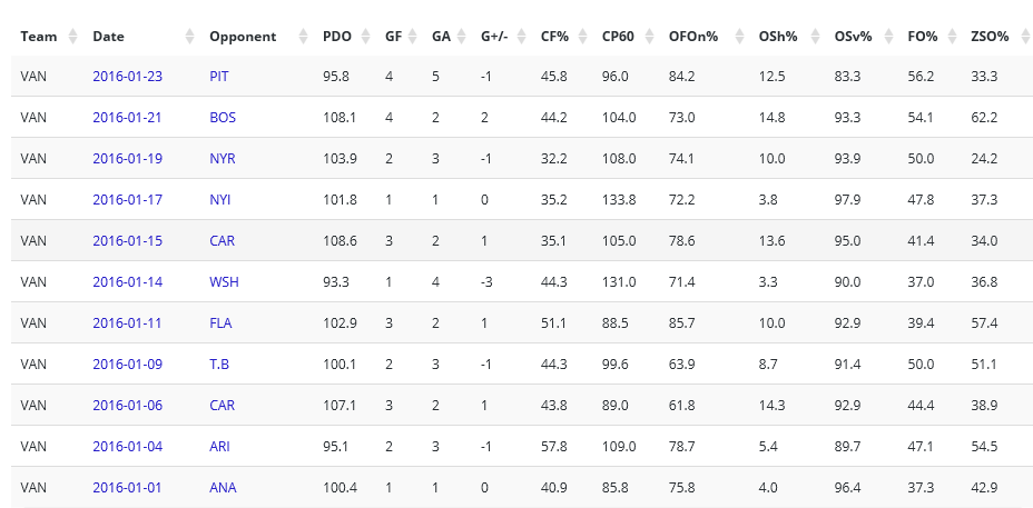 VANCOUVER CANUCKS ADVANCED STATISTICS