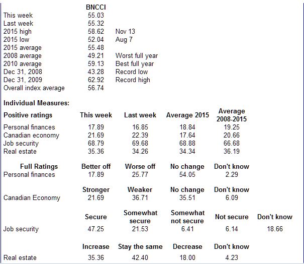 Bloomberg Nanos Canadian Consumer Confidence Index Data Summary for December 18th, 2015: