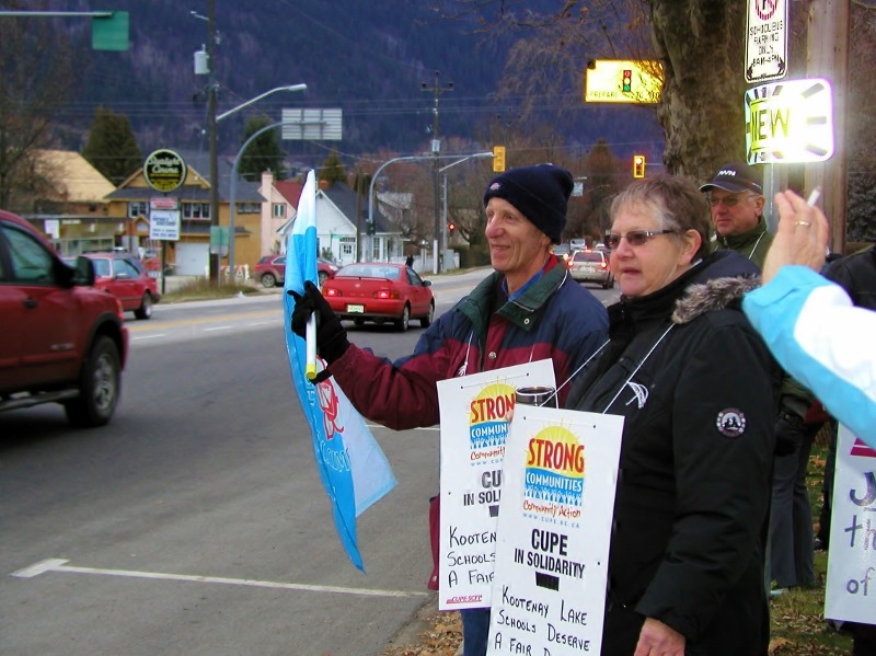 For the second day in a row, education workers in the Kootenay Lake School District rallied for a fair and reasonable contract. Workers rallied yesterday in Creston, where education assistants, tradespersons, bus drivers, custodians, along with teachers, parents and community allies gathered to show CUPE solidarity in School District 8.