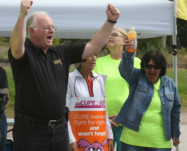 Moist, who was joined at the rally by CUPE Ontario president Fred Hahn and Ontario Federation of Labour president Sid Ryan, described the dismissal of five striking workers over allegations of illegal confinement as an “outrageous” tactic.