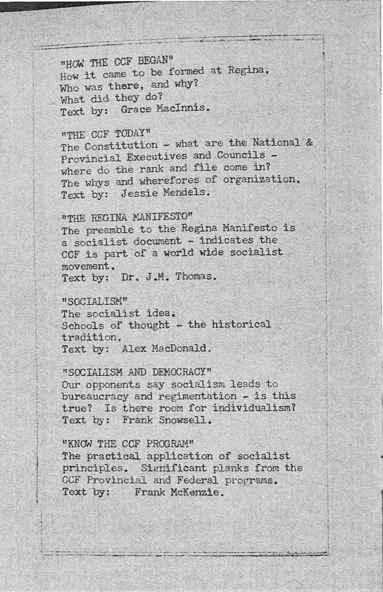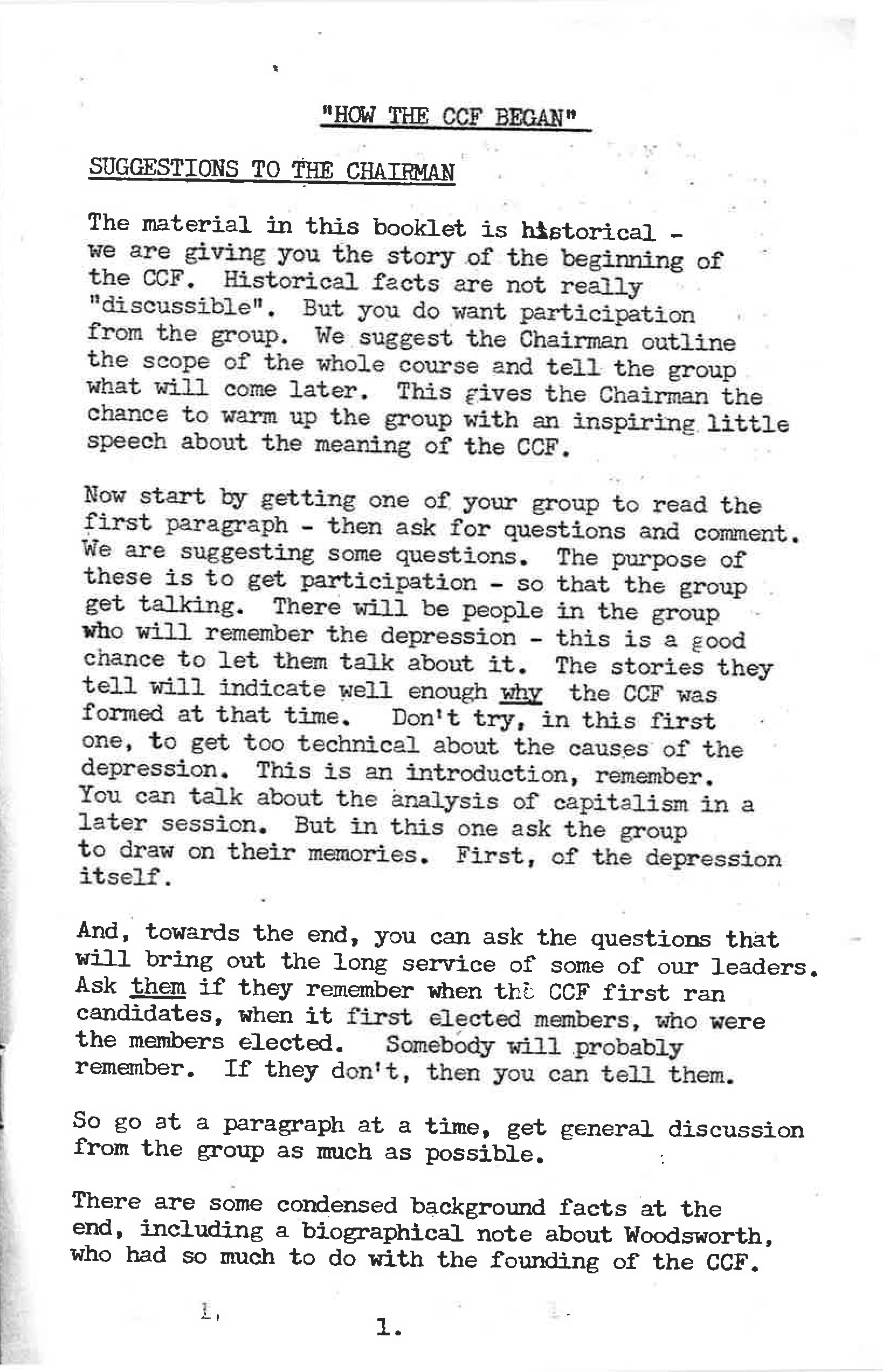 Understanding the CCF No.1: How the CCF began. Issued by the Provincial Education Committee C.C.F. (B.C.-Yukon Section) 1953.
