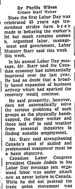 None of the recommendations were taken up by the government of the day. Workers continued to celebrate Labour Day and May Day without the benefit of a statutory holiday, as they had for years. Five years and two prime ministers later, Labour Day was proclaimed, but it is not clear that the government had consulted the report of the Royal Commission. What is clear is that the government was responding to a wave of worker militancy, strikes and radicalism.