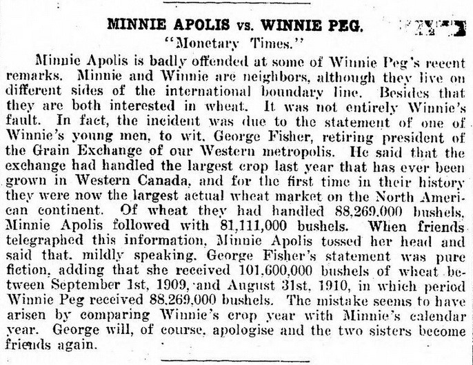 Minnie Apolis vs Winnie Peg Posted on August 30, 2013 by CanucksBanter From: The Western Call, Vancouver, B.C., October 14, 1910