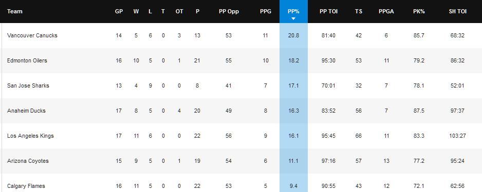 Vancouver is now 2 for 35 in their last 13 games with the man advantage (2 for 24 at home).