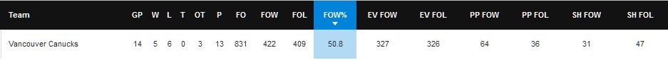 Both Linden Vey and Adam Cracknell were 2 for 3, for 67%; Bo Horvat, 2 for 5, for 40%, in the face-off circle.