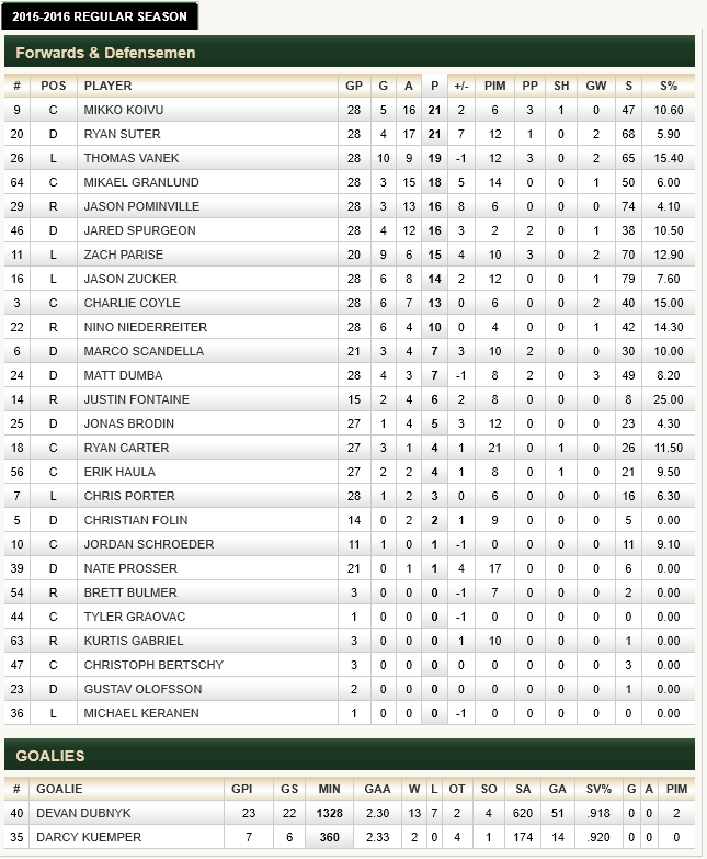 - Derek Dorsett: 0 goals-3 assists in last 21 games