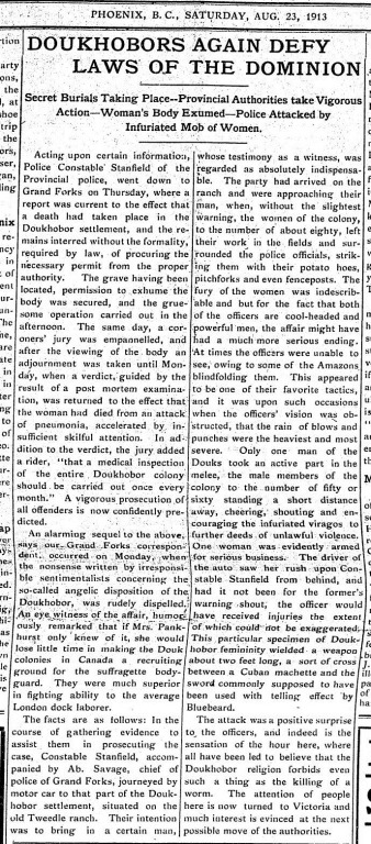 Doukhobors Again Defy Laws Of The Dominion August 23, 2013 / Andrew Phillip Chernoff From: Phoenix Pioneer, Phoenix, B.C., August 23, 1913 Share this: Print (Opens in new window) Print Share on Facebook (Opens in new window) Facebook Share on X (Opens in new window) X Email a link to a friend (Opens in new window) Email Like Loading...