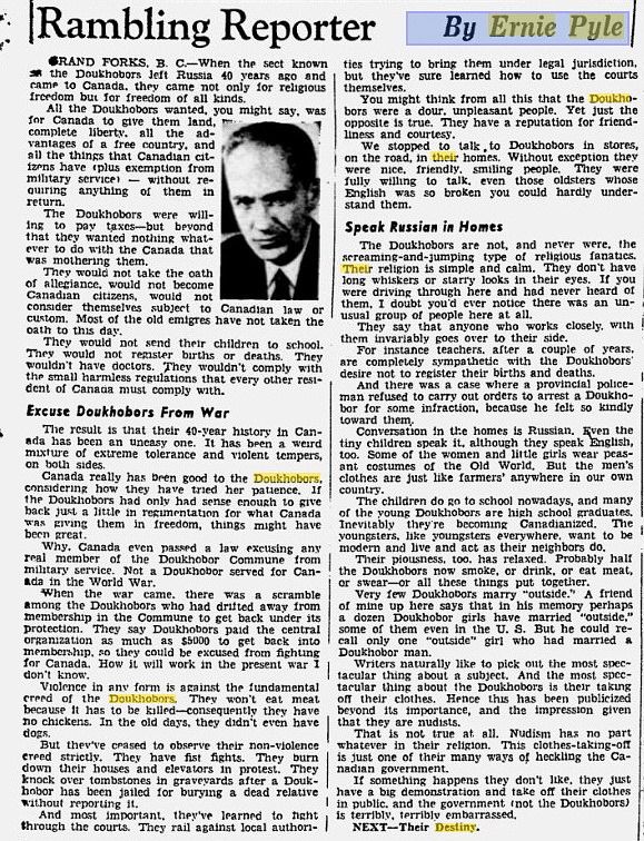 Rambling Reporter Ernie Pyle: Among The Doukhobors August 4, 2013 / Andrew Phillip Chernoff Pittsburgh Press –September 26, 1939: Pittsburgh Press-September 27, 1939: Pittsburgh Press-September 28, 1939: Share this: Print (Opens in new window) Print Share on Facebook (Opens in new window) Facebook Share on X (Opens in new window) X Email a link to a friend (Opens in new window) Email Like Loading...