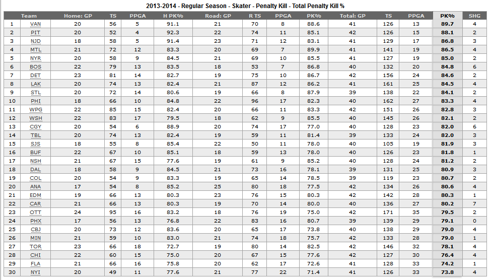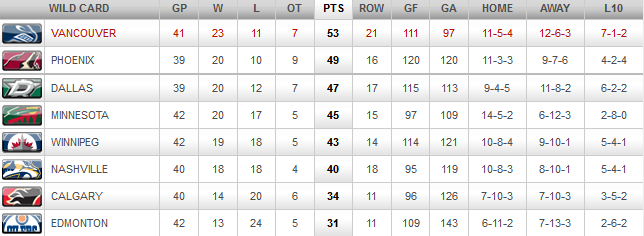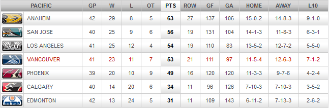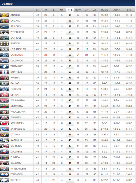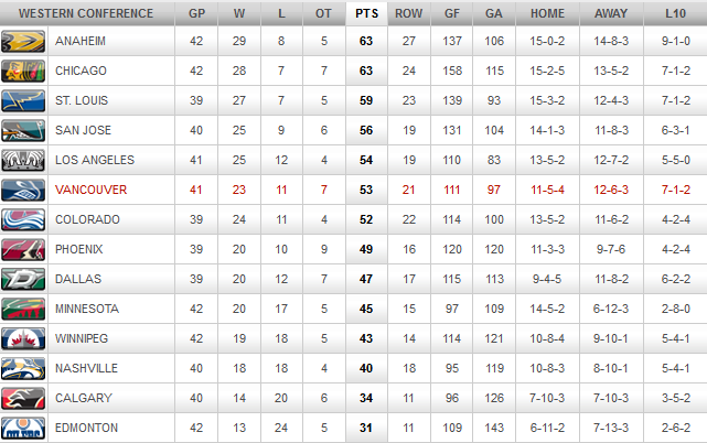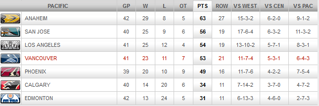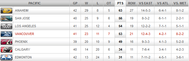 The following is a summary of where the Canucks are relative to the league, and play in the two conferences: