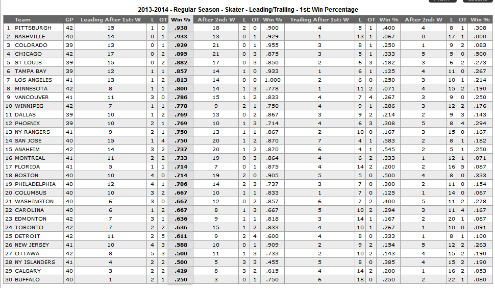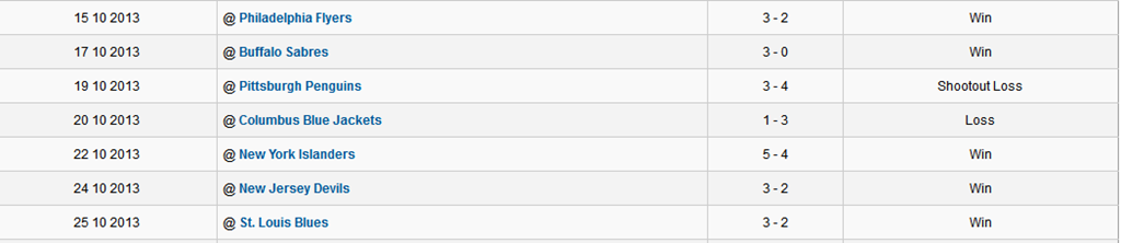So?? How’d they do? As you can see by the chart below they had 5 wins, 1 overtime loss and 1 regulation loss for 11 points out of a possible 14 points on the 7 game road trip.