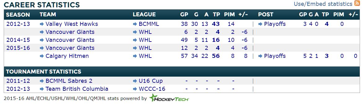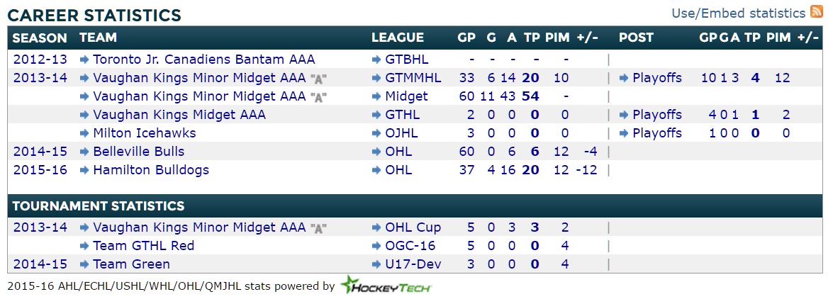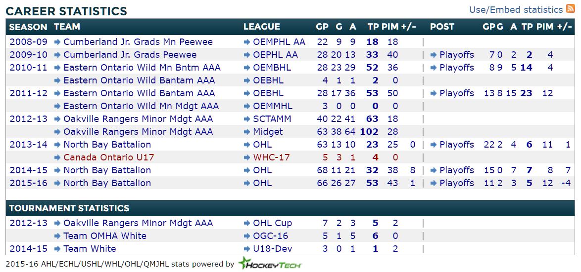 He also managed a whopping 107 points in 57 games in the OHL regular season, before scoring better than a goal per game in the OHL playoffs in his draft season.