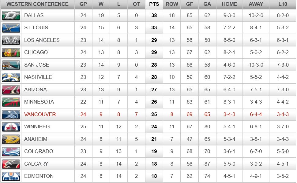 Already Vancouver and Anaheim have lost 15 and 16 games respectively, and are trying to figure out how to play 60-minute hockey and dominant their opposition on a consistent basis.