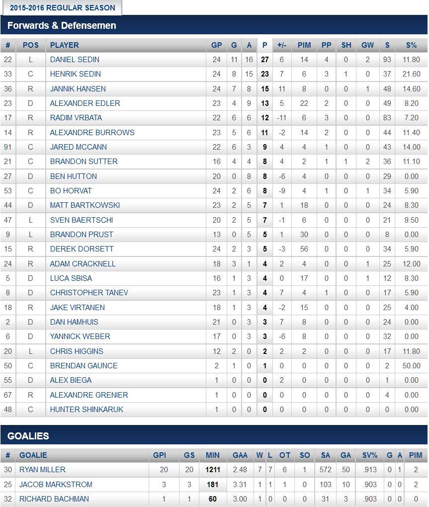 Statistics courtesy of the NHL, and Vancouver Canucks, with thanks.