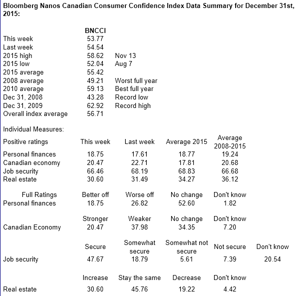 Bloomberg Nanos Weekly Consumer Confidence Tracking