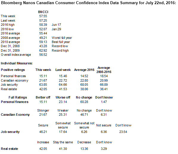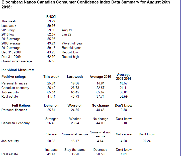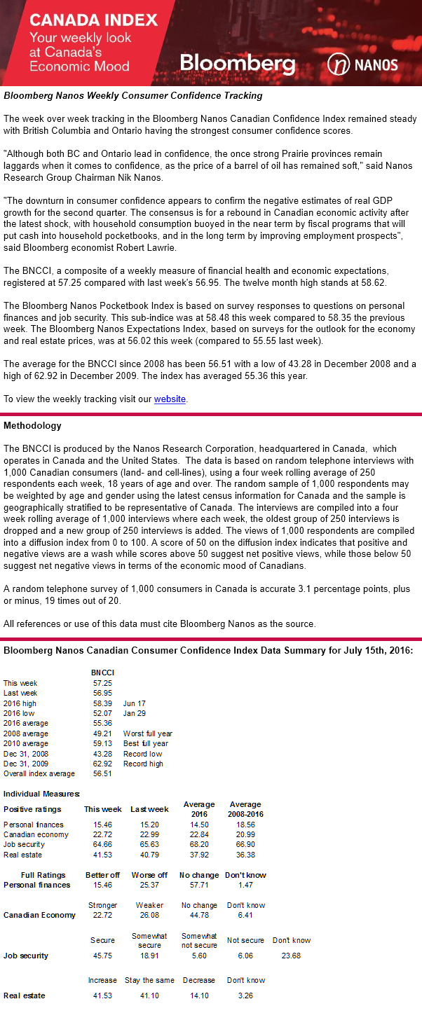 Bloomberg Nanos Weekly Consumer Confidence Tracking