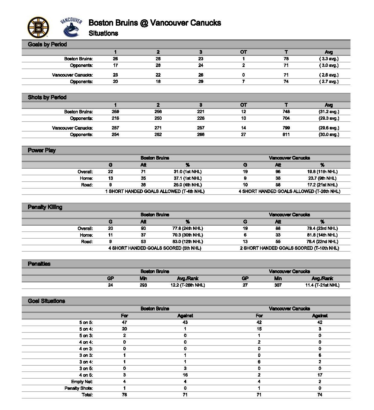 The Vancouver Canucks (20-17-11) played the fifth game of their 6-game road trip tonight against the Boston Bruins ( 24-17-5) at TD Garden.