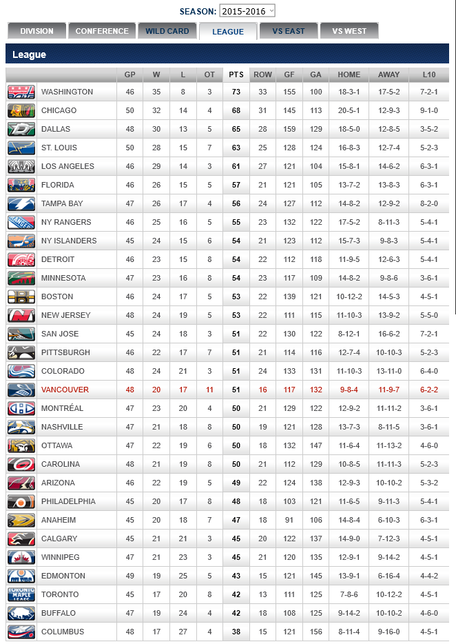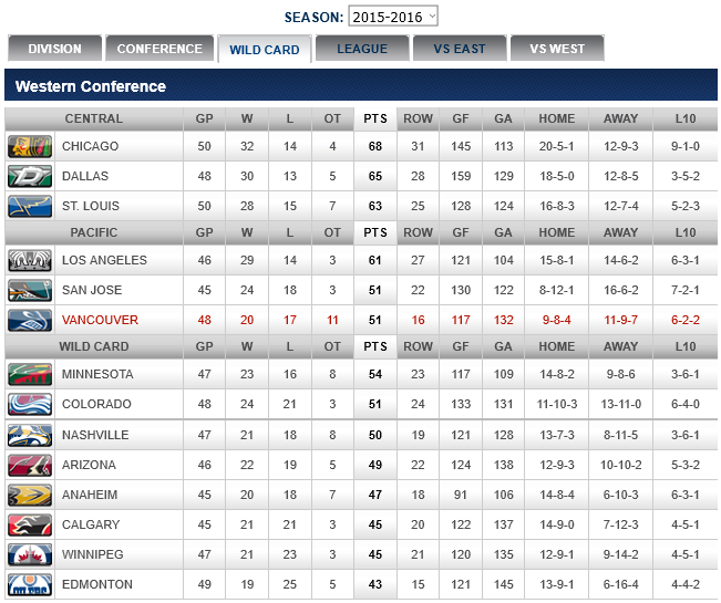NATIONAL HOCKEY LEAGUE STANDINGS