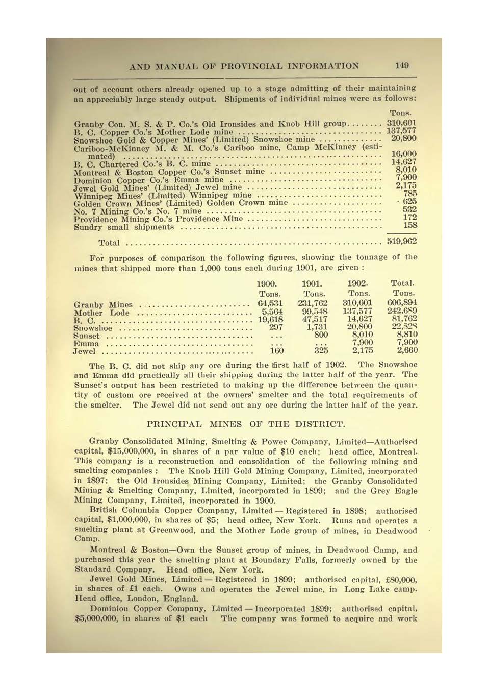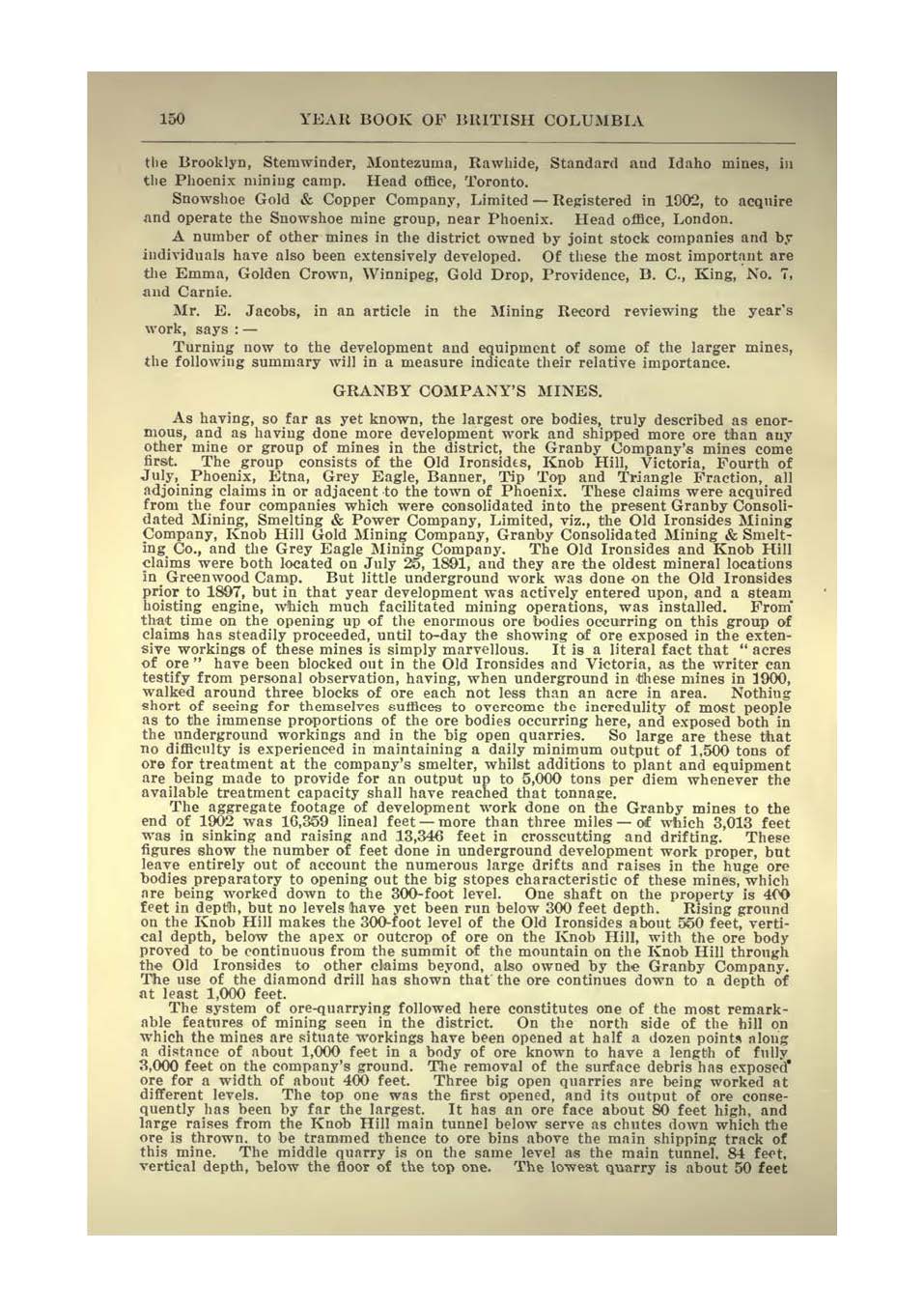 1903 Boundary Mining District Of Report Posted on February 14, 2016 by CanucksBanter SOURCE: 1903 Year Book of British Columbia