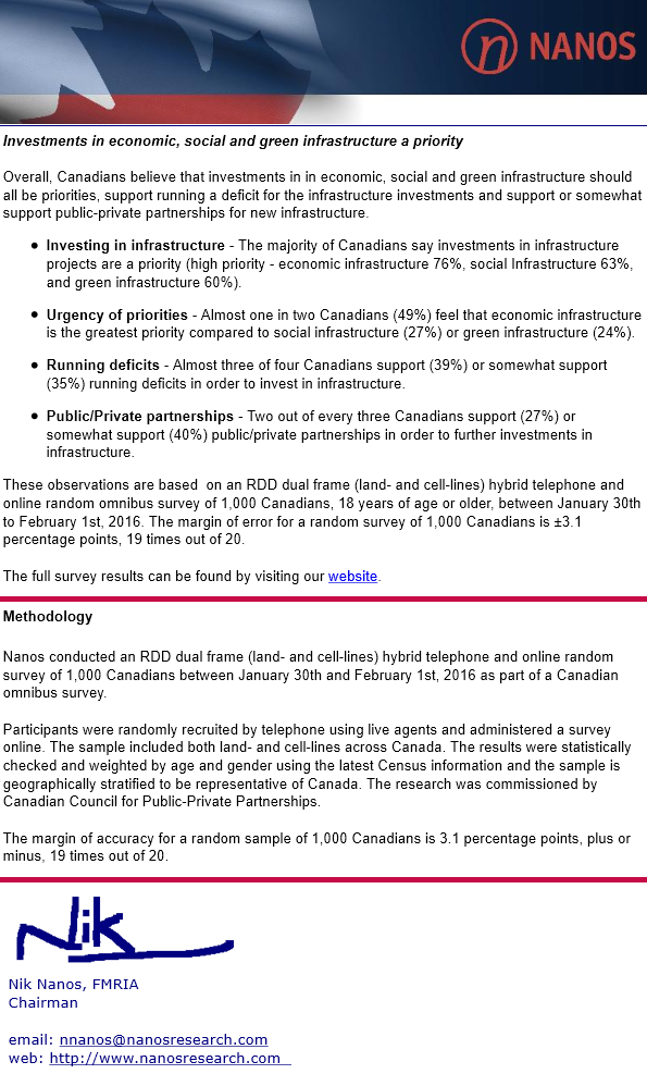 Investing in economic infrastructure seen as a high and urgent priority for Canadians (CCPPP/Nanos Survey) Posted on February 24, 2016 by CanucksBanter
