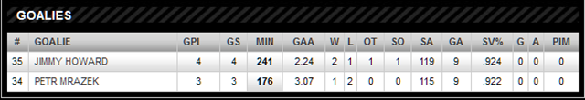 For the Red Wings, Henrik Zetterberg and rookie Dylan Larkin lead Detroit in scoring with 10-points and 7-points respectively. Justin Abdelkader and Gustav Nyquist closely follow with 5-points each.