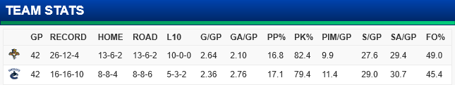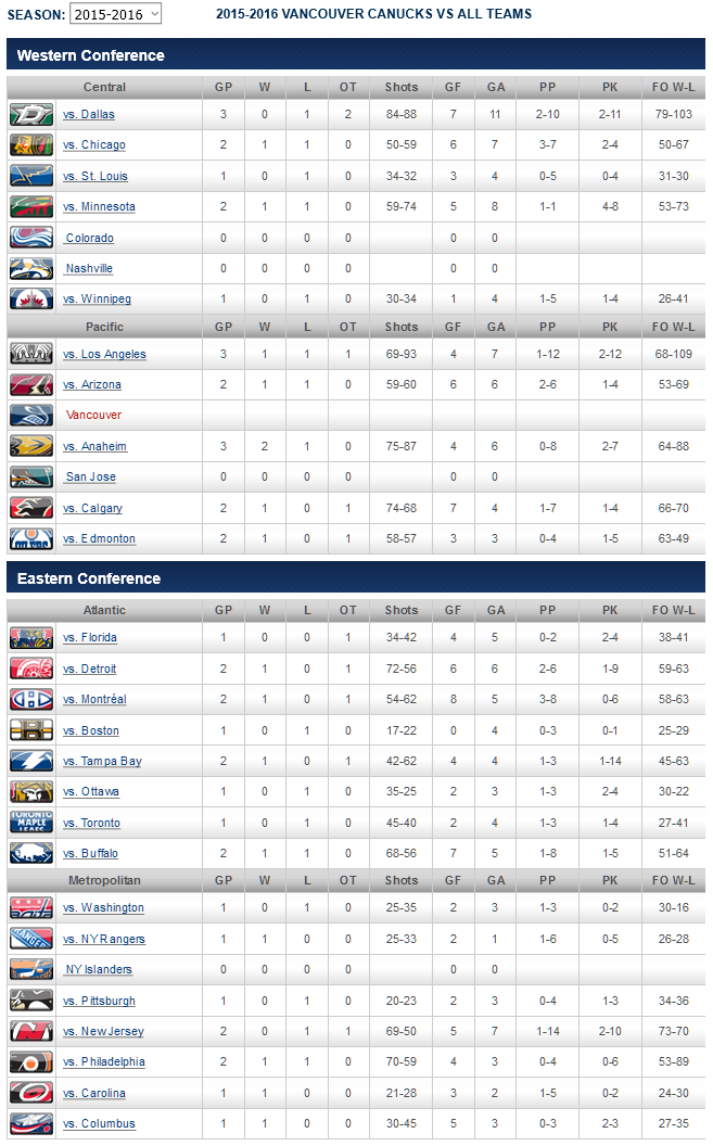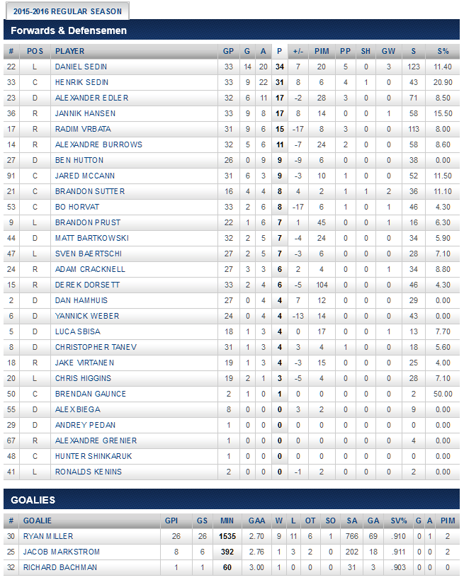STATISTICS COURTESY OF THE NHL AND VANCOUVER CANUCKS