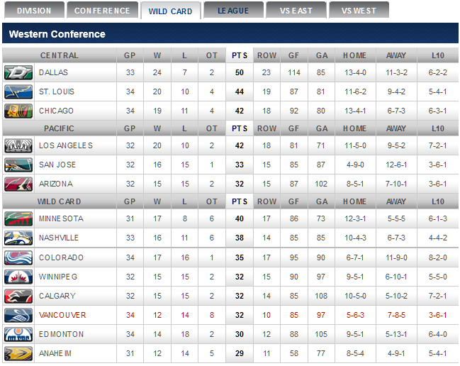 WESTERN CONFERENCE WILD CARD STANDINGS