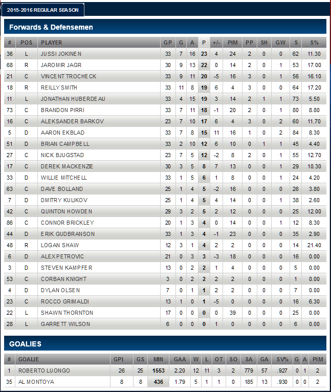 Jussi Jokinen, his 8th of the season, on a wrist shot, assisted by Reilly Smith (11) at 1:20, made it 1-0 Florida.