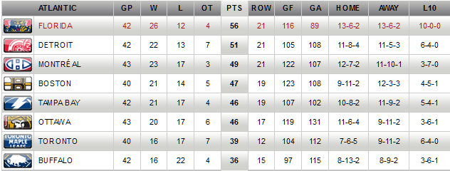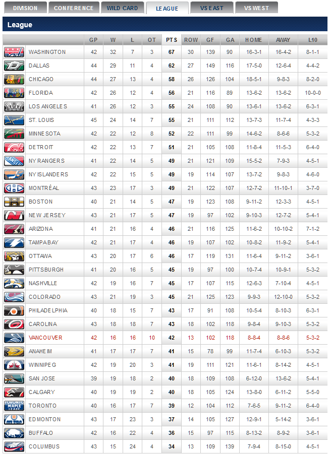 NATIONAL HOCKEY LEAGUE STANDINGS