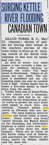 Boundary Falls is a medium sized waterfall on Boundary Creek, a tributary of the Kettle River. It is located within a small canyon a little over halfway between Midway & Greenwood, beside the town which was named after the falls, Boundary Falls.