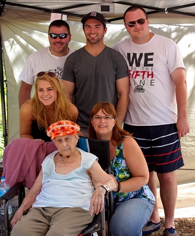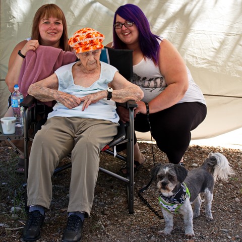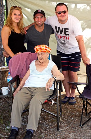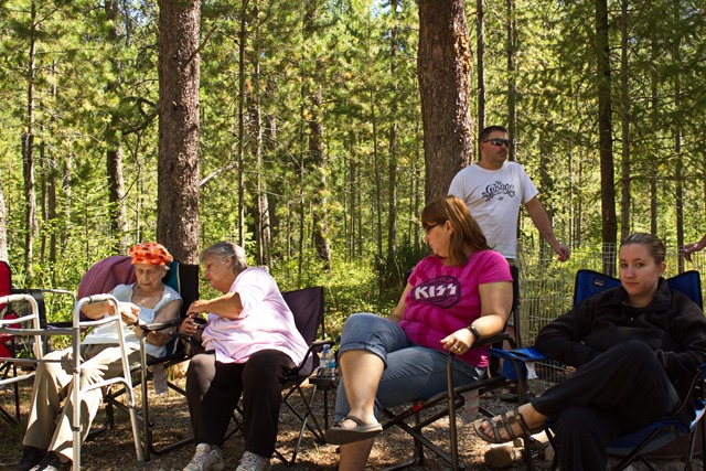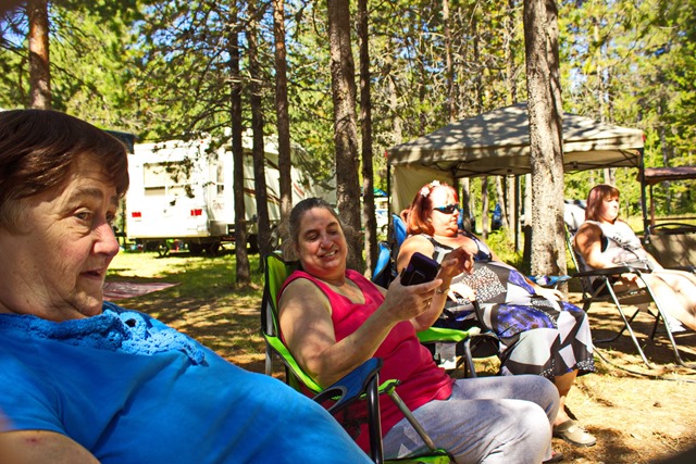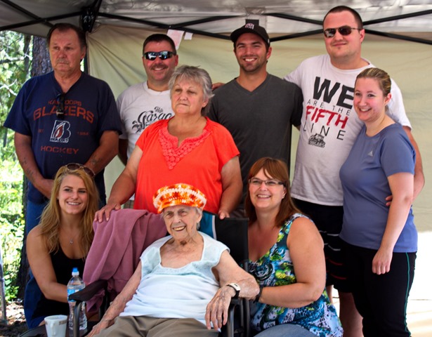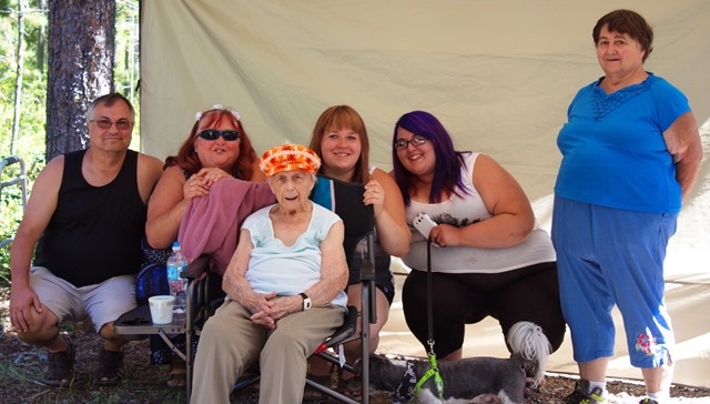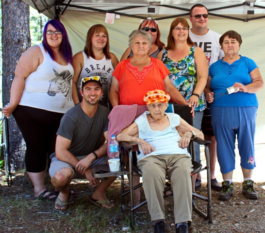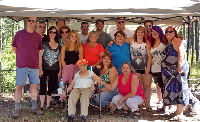 Family and relatives of Jean Ashe Klinosky and Waneta Klinosky Chernoff gather at Little Dipper Hideaway, Westbridge, B.C., near the West Kettle River July 18-20, 2015.