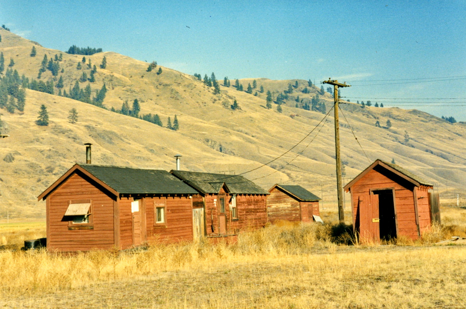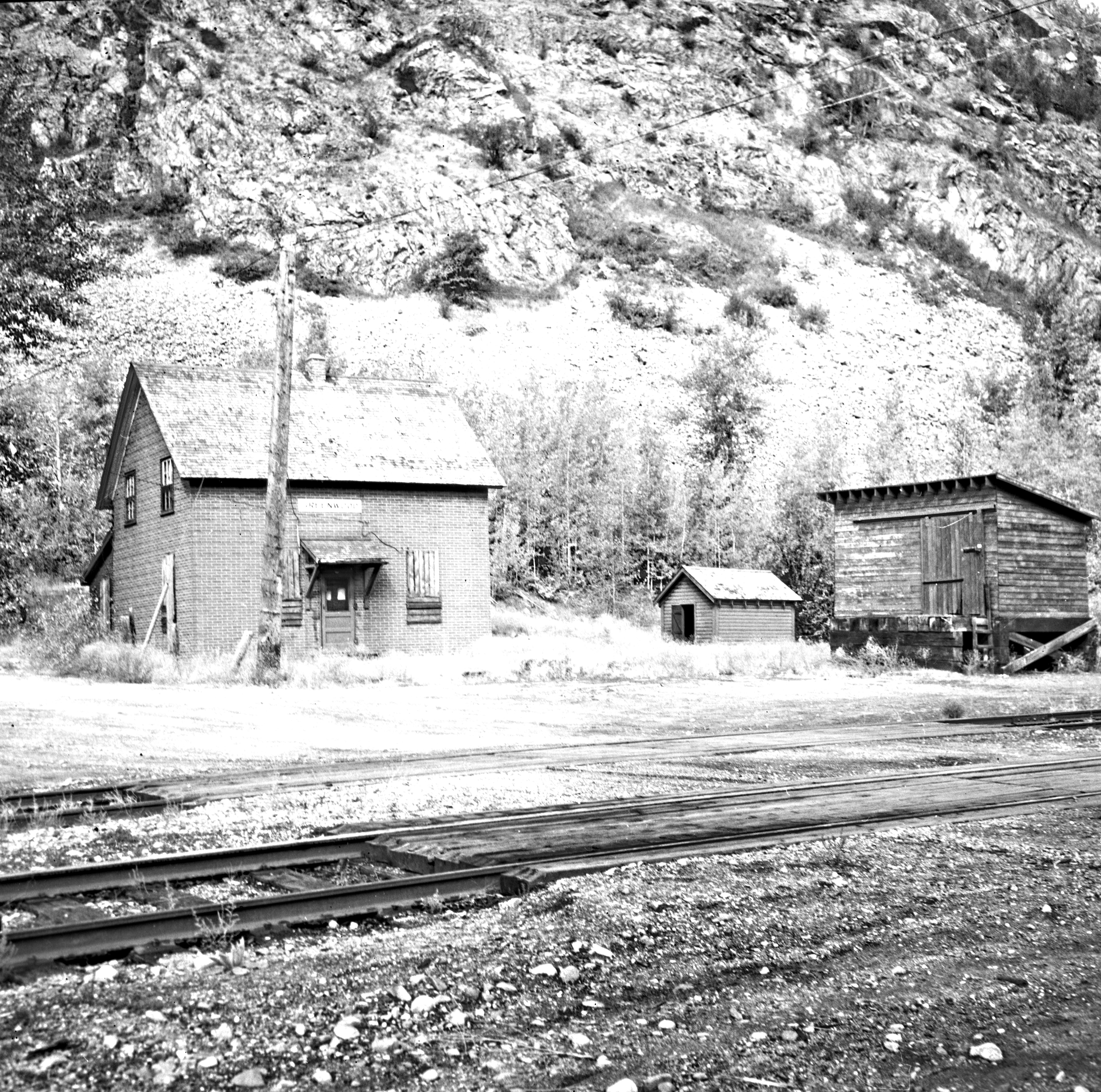 Carmi CPR depot Photograph taken by David Davies.Northern BC Archives & Special CollectionsDate(s) [23 June 1979] (Creation) Photograph depicts the Carmi Depot located at mile 46.6 on the CPR line in the Carmi Subdivision. This is the only surviving building at the depot. The layout here consisted of 4 passing/storage tracks and 1 short siding. The view is looking north and upgrade.
