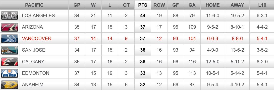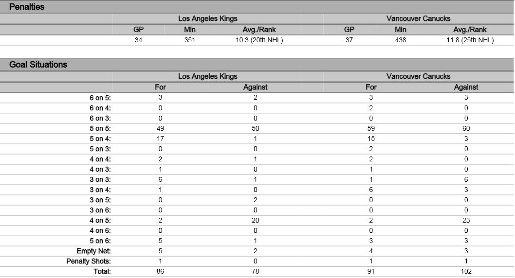 - All Strengths: Canucks-9; Los Angeles-23
