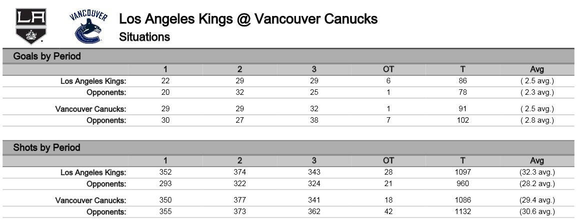 - All Strengths: Kings-71; Vancouver-38