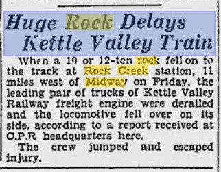 Huge Rock Delays Kettle Valley Train Posted on July 20, 2013 by CanucksBanter Vancouver Sun – Mar 22, 1932