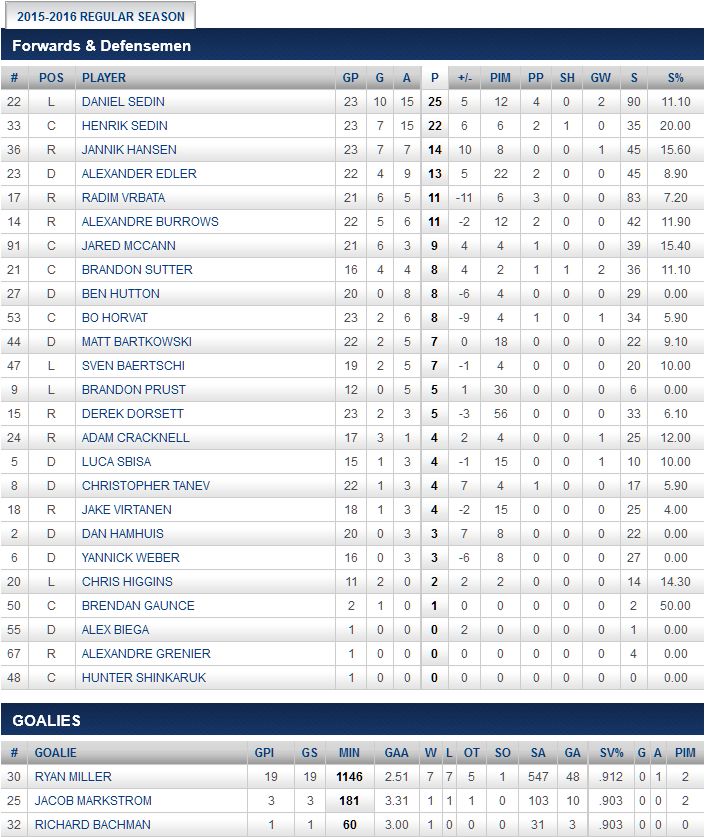 Statistics courtesy of the NHL and Vancouver Canucks, with thanks.