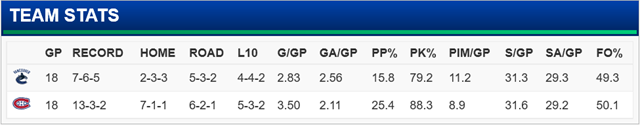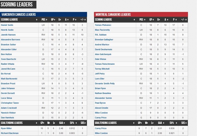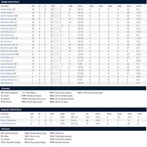 Statistics courtesy of the NHL, Vancouver Canucks and ESPN, with thanks.