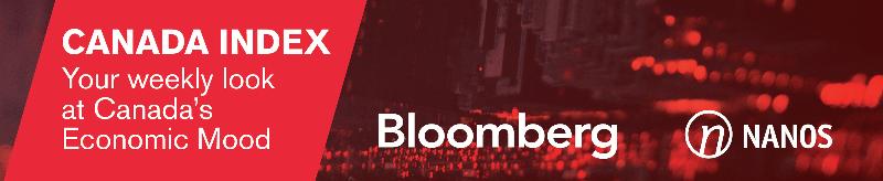 The Bloomberg Nanos Pocketbook Index is based on survey responses to questions on personal finances and job security. This sub-indice was at 58.66 this week compared to 60.50 the previous week. The Bloomberg Nanos Expectations Index, based on surveys for the outlook for the economy and real estate prices, was at 54.35 this week (compared to 52.84 last week).
