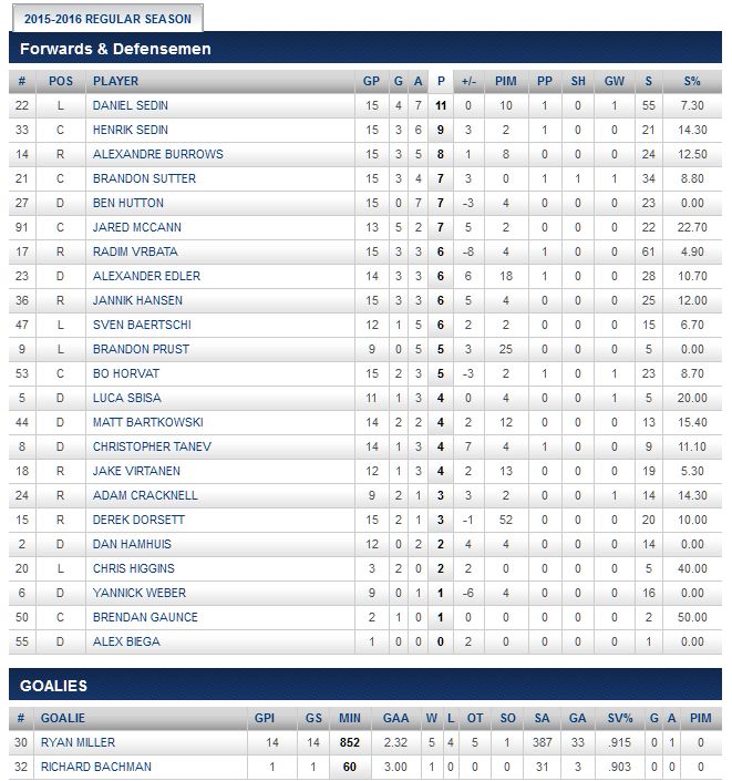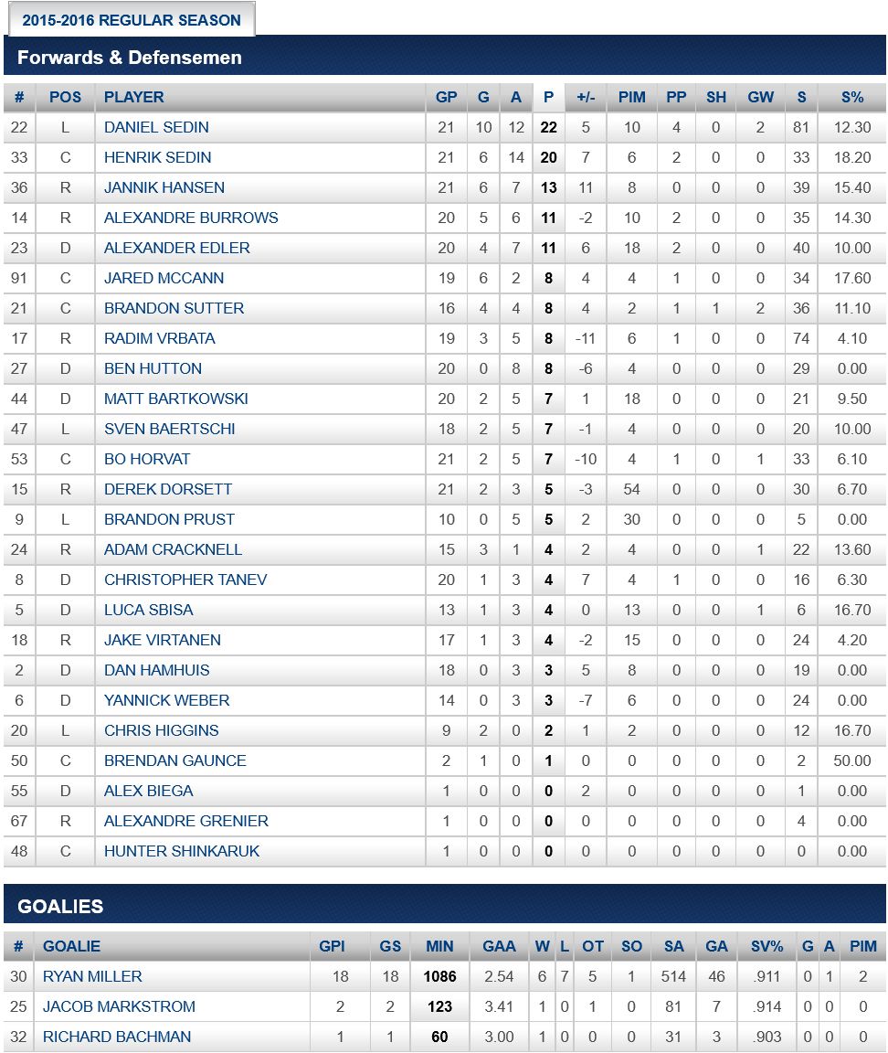 CANUCKS PLAYER STATS