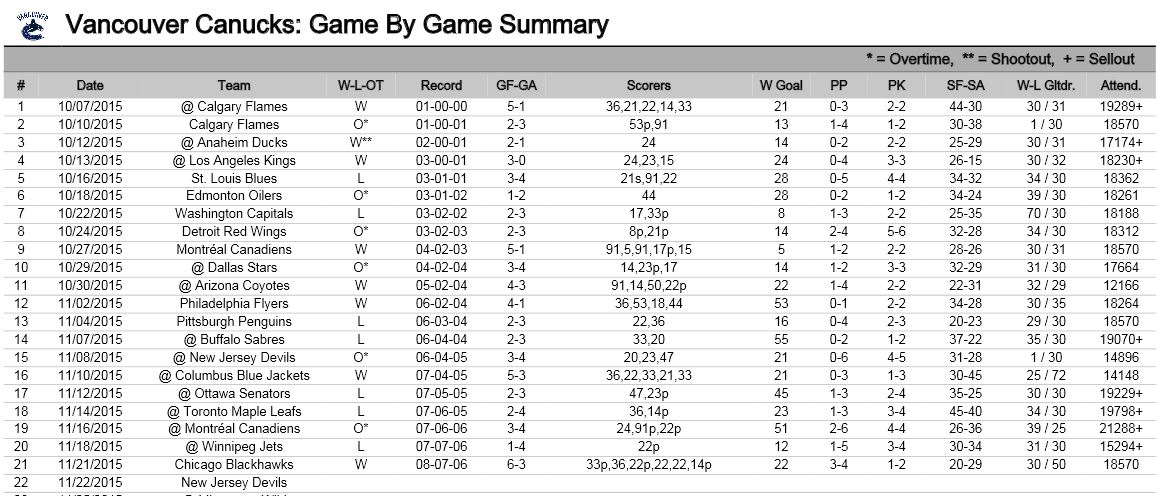 Statistics courtesy of the NHL, Sportsnet, and the Vancouver Canucks, with thanks.