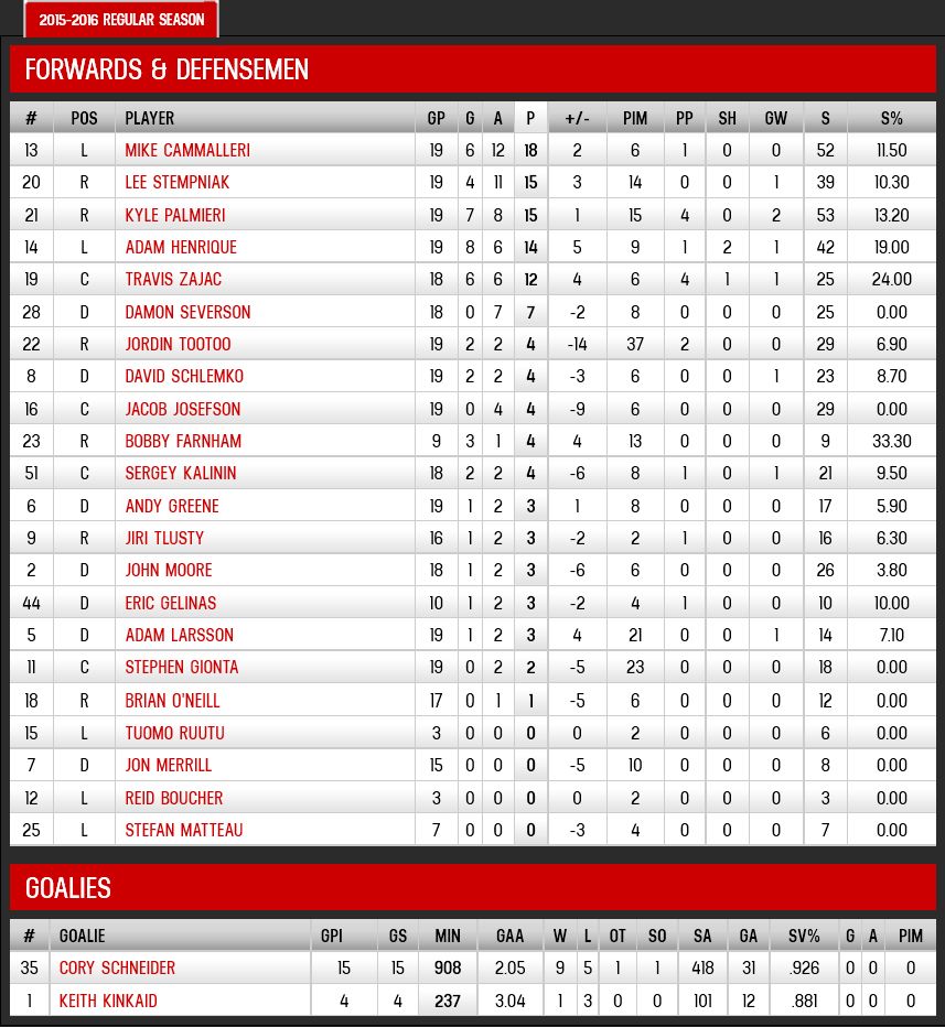 DEVILS PLAYER STATS