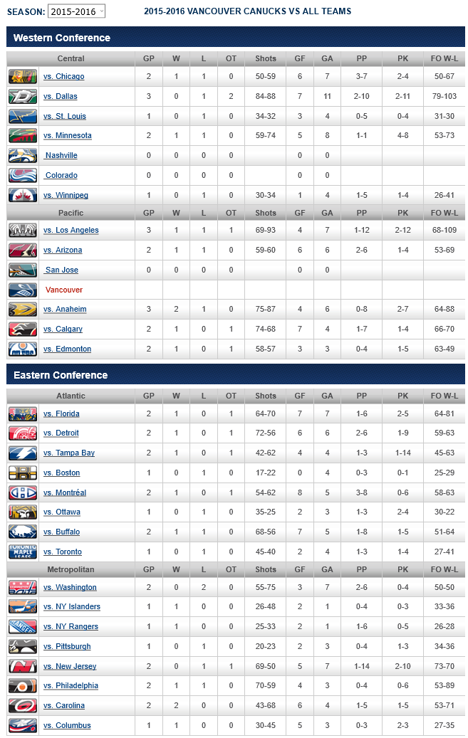 STATISTICS COURTESY OF THE NHL AND VANCOUVER CANUCKS