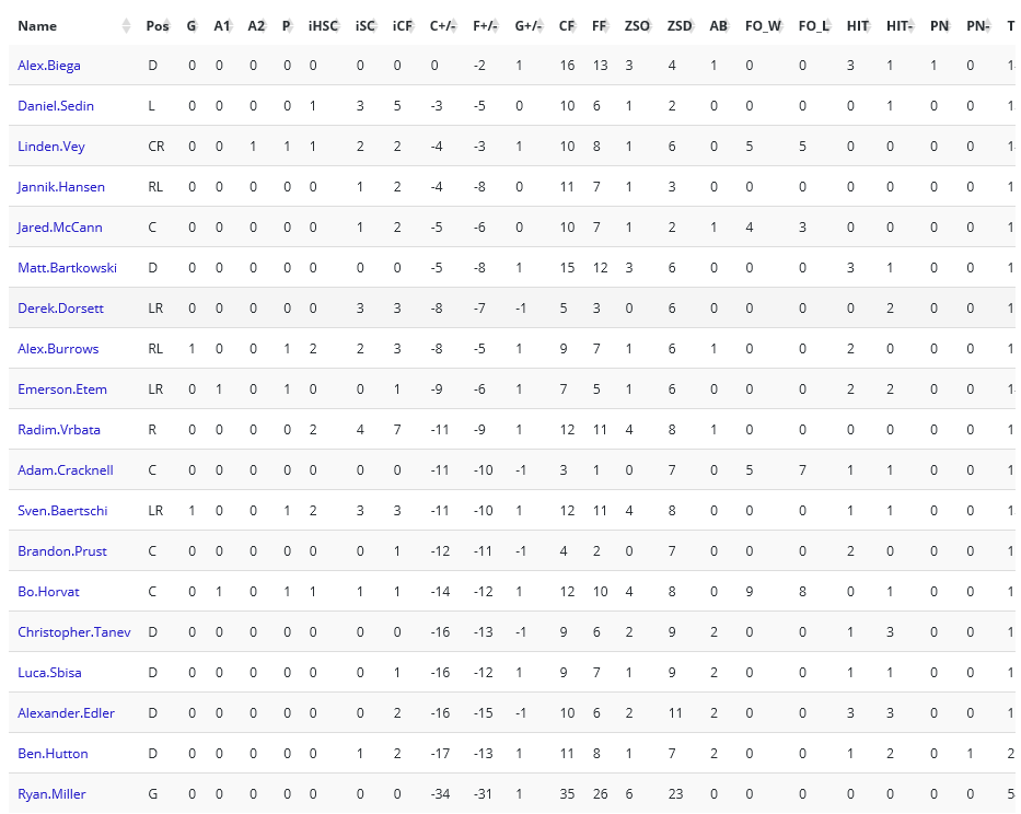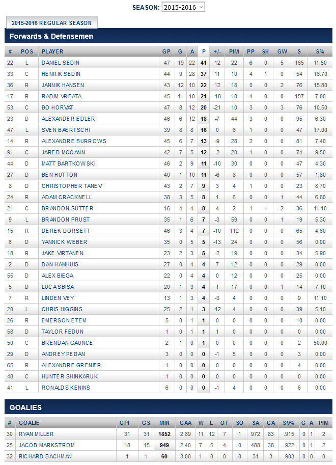 CANUCKS PLAYERS STATS