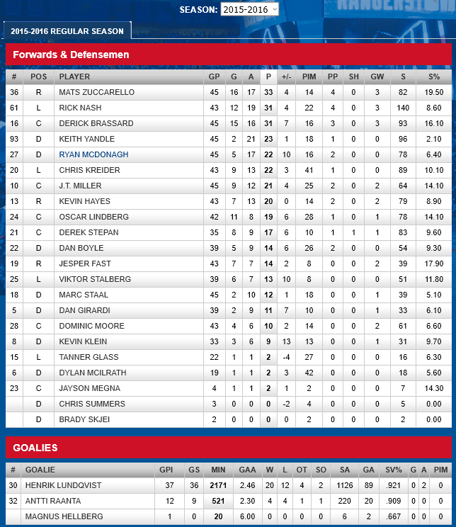 After the deluge of shots, and unable to get the puck out of their end, the Rangers persistence would pay off to the tying goal, when Matt Zuccarello, would get his 17th goal of the season from Keith Yandle (22) and Rick Nash (21) at 11:46, Rangers winning 3-2 in overtime.